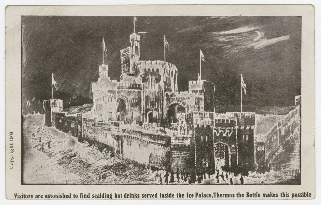 Visitors are astonished to find scalding hot drinks served inside the Ice Palace, Thermos the Bottle, makes this possible