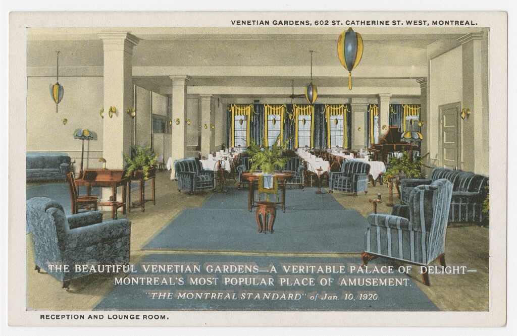 Venetian Gardens, 602 St. Catherine St. West, Montreal : reception and lounge room