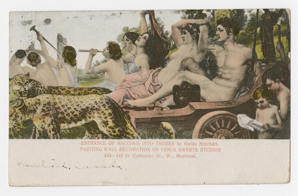 Entrance of Bacchus into Thebes : painting wall decoration of Venus Sweets Studios, 440-442 St. Catherine St., W., Montreal /
