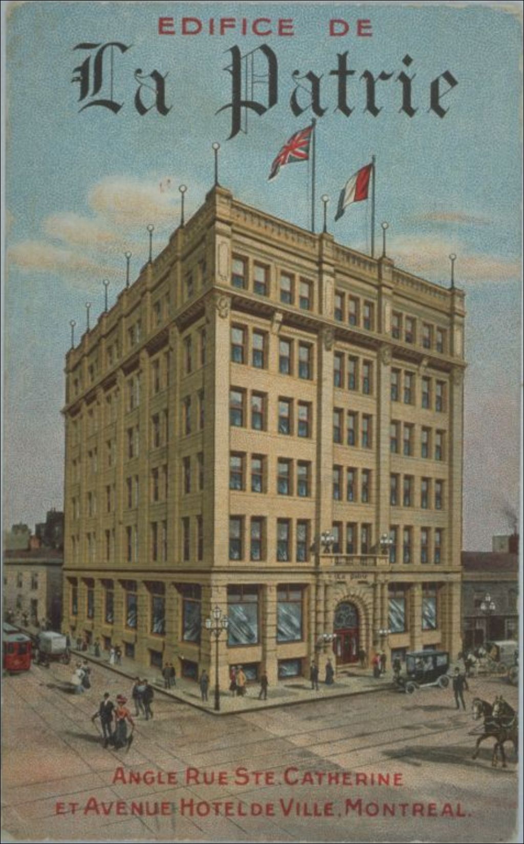 Édifice de La Patrie angle rue Ste. Catherine et avenue Hôtel de Ville, Montréal