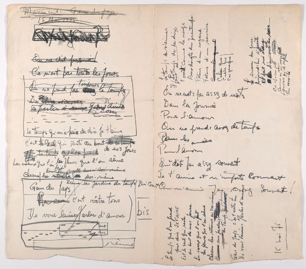 Poèmes, chansons et textes rédigés en cours de carrière, 1959-2003, Archives nationales à Montréal, Fonds Gilles Vigneault (Ajout en traitement), (06M,P862,S2,SS1,D2).