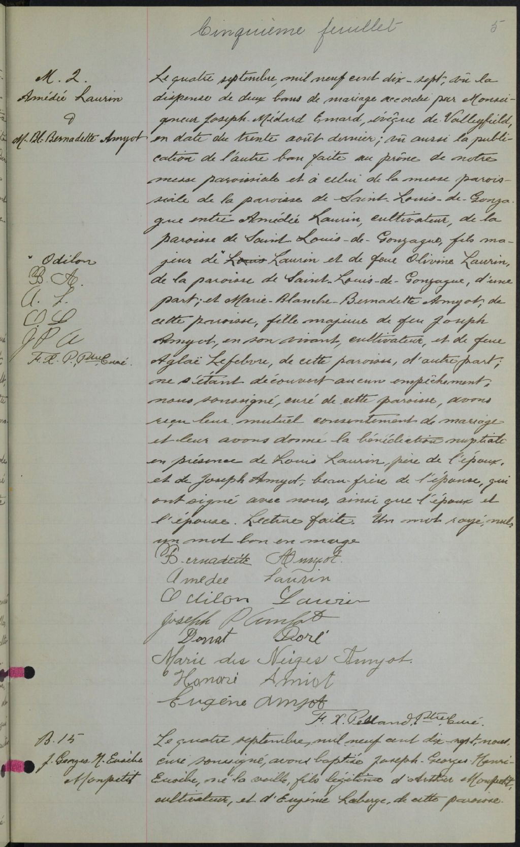 Saint-Étienne-de-Beauharnois, 1869-1921, Archives nationales à Montréal, Fonds Cour supérieure. District judiciaire de Beauharnois. État civil, (06M,CE607,S5).