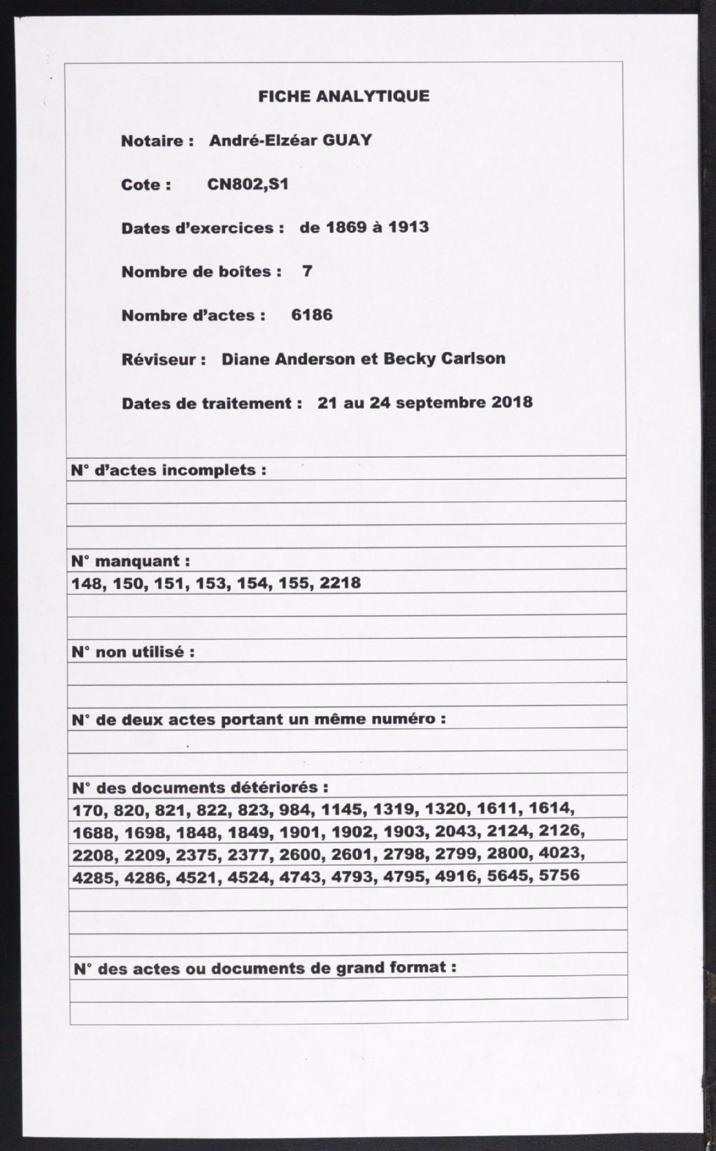 André-Elzéar Guay, 1869-1913, Archives nationales à Rouyn-Noranda, Fonds Cour supérieure. District judiciaire de Témiscamingue. Greffes de notaires (en cours de traitement), (08Y,CN802,S1).