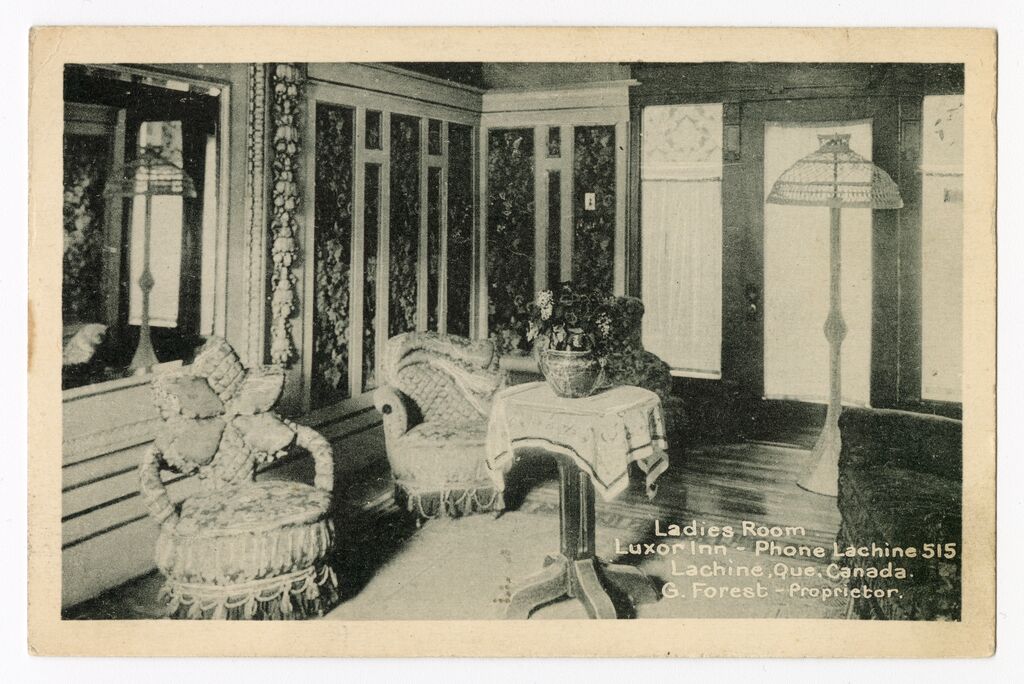 Ladies room, Luxor Inn : phone Lachine 515, Lachine, Que., Canada : G. Forest, proprietor