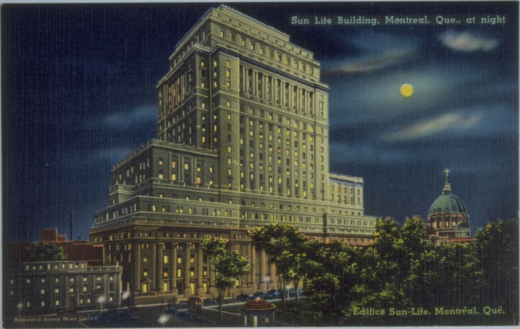 Sun Life Building, Montreal, Que., at night Édifice Sun Life, Montréal, Qué.