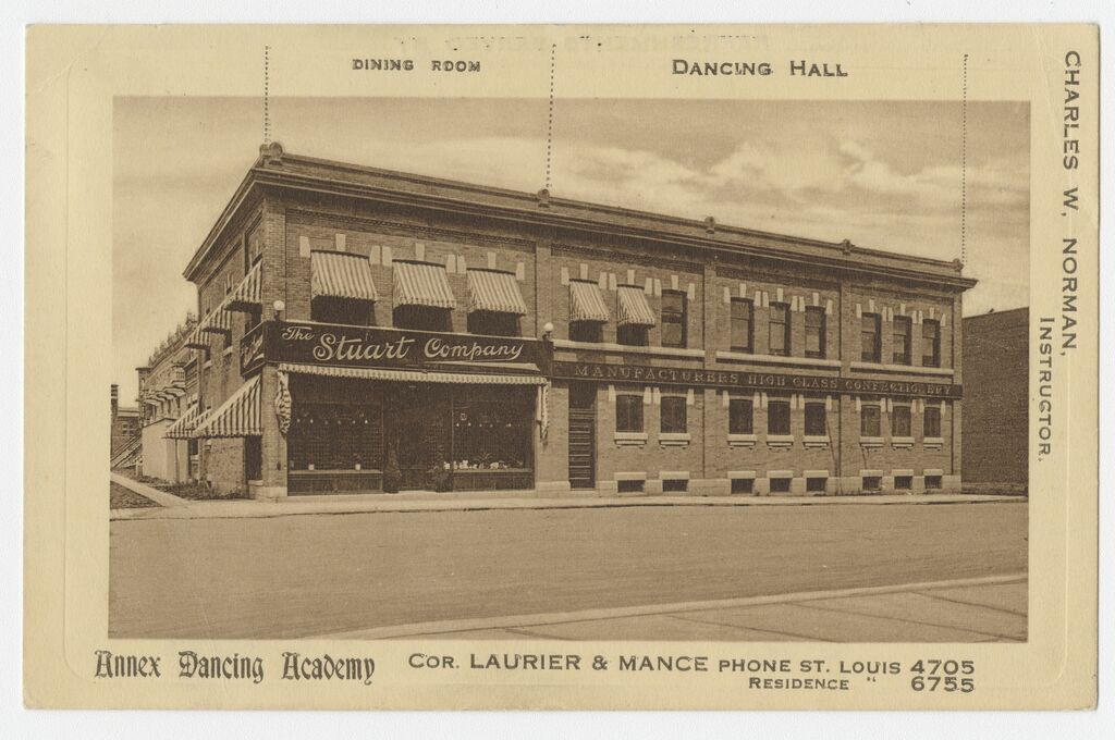 Annex Dancing Academy, cor. Laurier & Mance... : dining room, dancing hall, Charles W. Norman, instructor