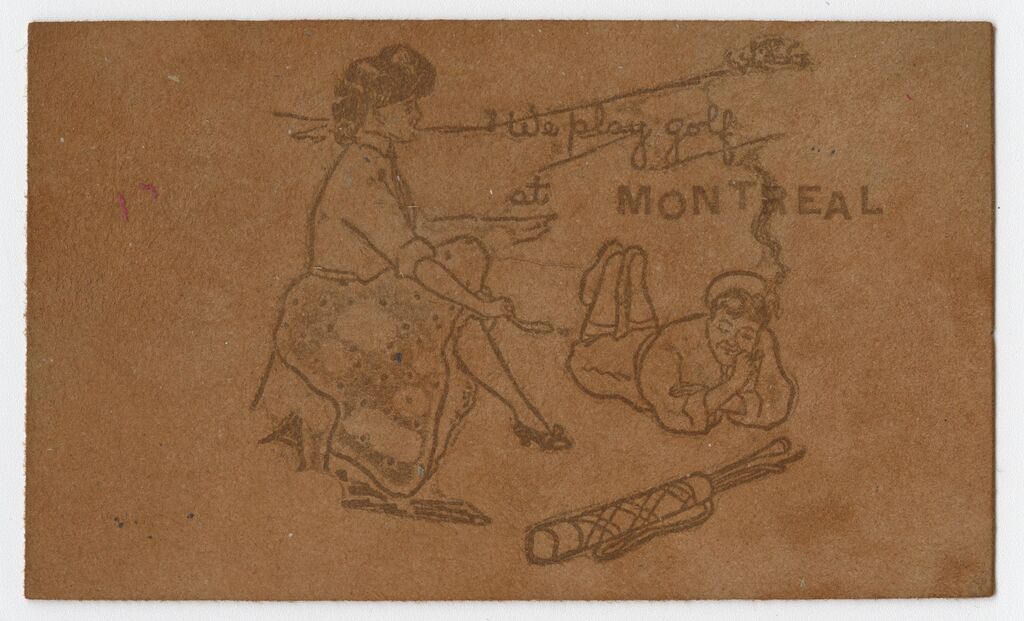 1 carte postale : pyrogravure, sur cuir ; 9 x 14 cm