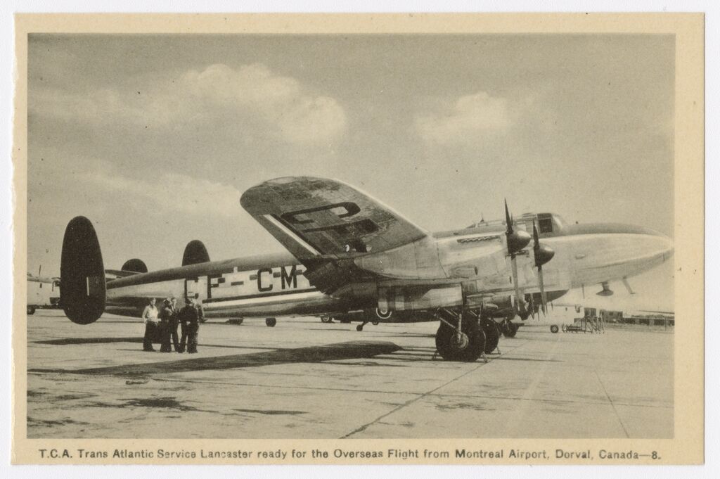 T.C.A., Trans Atlantic Service Lancaster ready for the overseas flight from Montreal Airport, Dorval, Canada