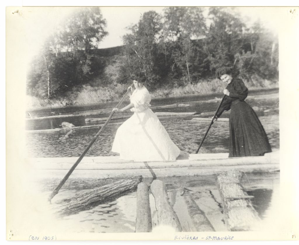 Femmes sur les estacades faisant de la drave, 1905, Archives nationales à Trois-Rivières, Fonds Jean Loranger, (04T,P85,P1), Photographe non identifié.