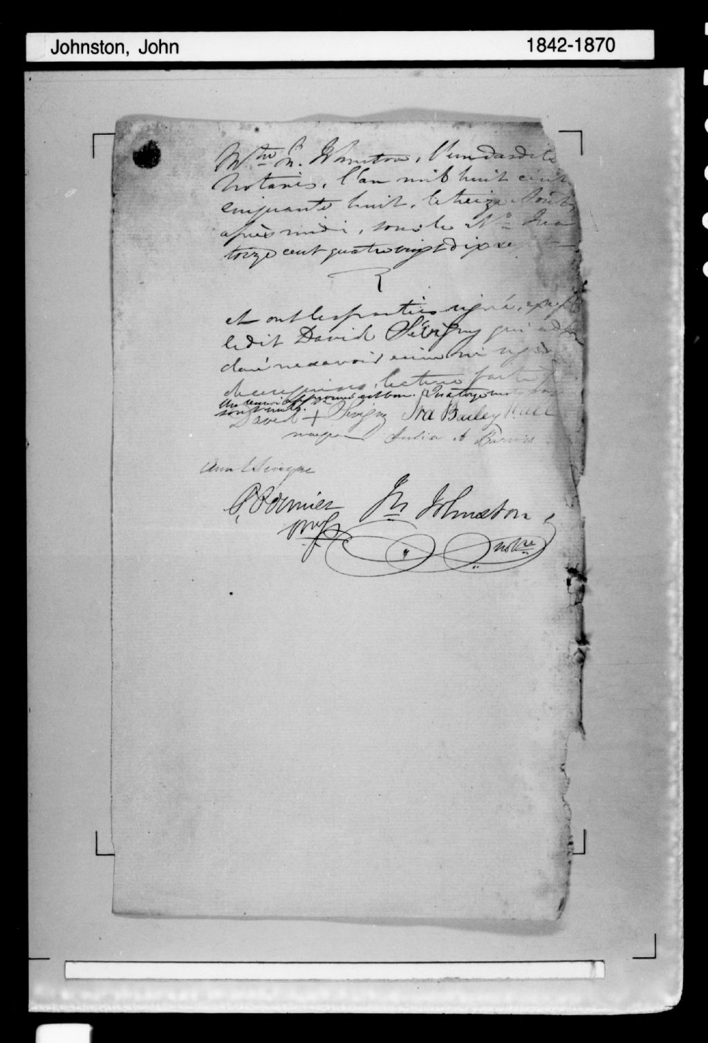 - Cette série regroupe les minutes notariales du greffe du notaire John Johnston (3216 pièces numérotées) et deux (2) répertoires originaux pertinents.Outre les informations spécifiques aux parties impliquées dans chacun des contrats consignés dans ce greffe, lesquelles peuvent être utilisées, entre autre, dans le cadre de recherches à caractère généalogique, cette série constitue, dans un premier temps, une source documentaire intéressante sur le mode de fonctionnement de la société. D'autre part, prises dans leur ensemble, les données colligées dans ces documents officiels à contenu administratif et légal peuvent également constituer une source documentaire des plus révélatrices sur le mode et les conditions de vie de la population pendant cette période (métiers et professions mentionnés aux contrats, inventaires de biens, testaments), sur les classes sociales (mention de titres correspondant au rang social des parties concernées tels bourgeois, écuyer, etc), sur les moeurs et coutumes acceptées par la société et ses institutions (par le biais de déclarations, de jugement arbitral, d'injonctions, d'ordonnances, etc), et, dans une proportion moindre, sur la médecine d'époque et ses représentants.Enfin, la terminologie utilisée dans ces contrats notariés pourrait être avantageusement récupérée dans le cadre d'études portant sur l'évolution du langage administratif et légal, voire même sur l'évolution de la langue française