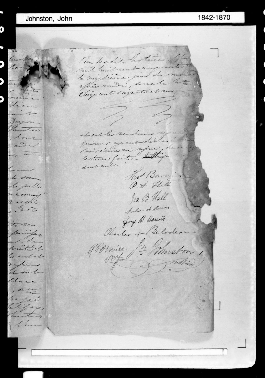 John Johnston, 1842-1870, Archives nationales à Trois-Rivières, Fonds Cour Supérieure. District judiciaire d'Arthabaska. Greffes de notaires, (04T,CN402,S20).