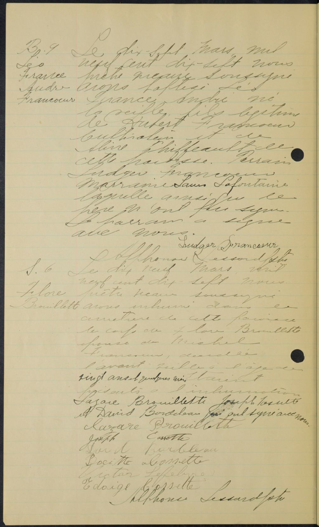 - Cette série regroupe les registres originaux de l'état civil, lesquels contiennent les enregistrements de baptêmes, de mariages et de sépultures consignés par le curé ou son représentant au cours de la période concernée par les documents.Outre les renseignements à caractère généalogique que nous pouvons y puiser, cette série peut constituer une source documentaire importante pour toute étude-statistique ou comparative sur les conditions de vie à différentes époques (mortalité infantile, espérance de vie) ou pour toute recherche portant sur l'occupation des terres (lieu de résidence), sur le mode de vie (métiers et professions, statut et âge des époux), sur les classes sociales (titres des parties impliquées, témoins/amis/parents présents lors d'un mariage), sur des évènements spéciaux (quelques mentions dans les sépultures) et sur des sujets à incidence médicale tels les maladies héréditaires (cause du décès)