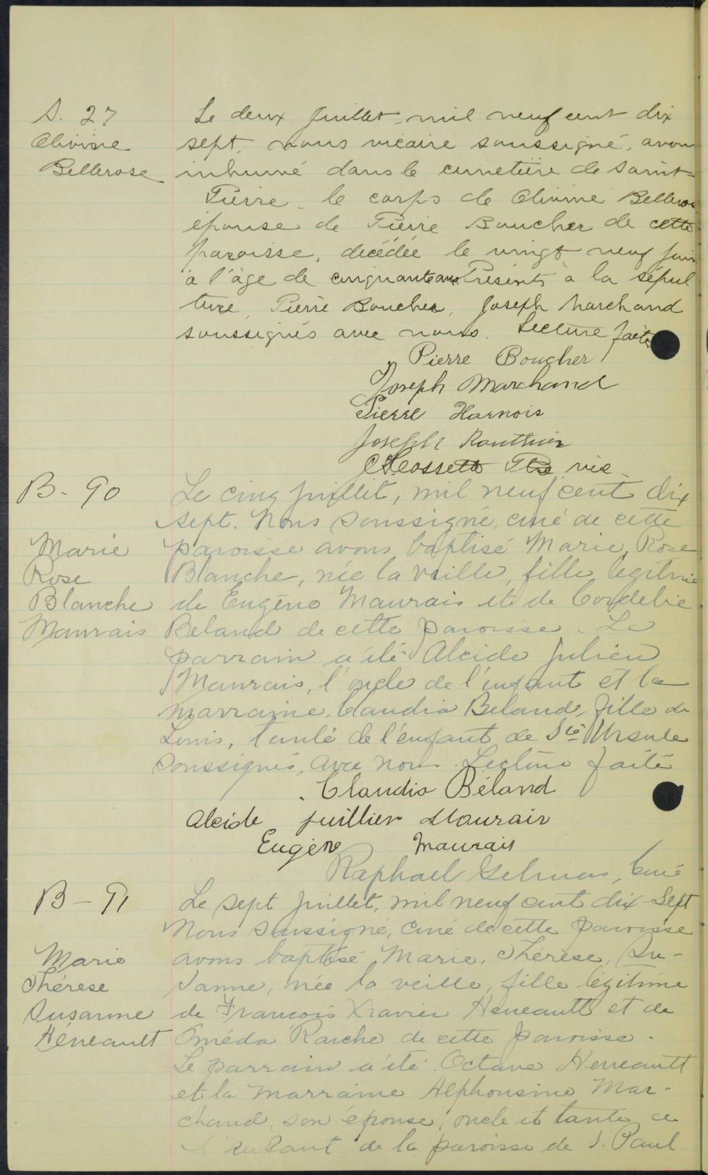 Saint-Marc-de-Shawinigan, 1911-1920, Archives nationales à Trois-Rivières, Fonds Cour supérieure. District judiciaire de Saint-Maurice. État civil, (04T,CE404,S35).