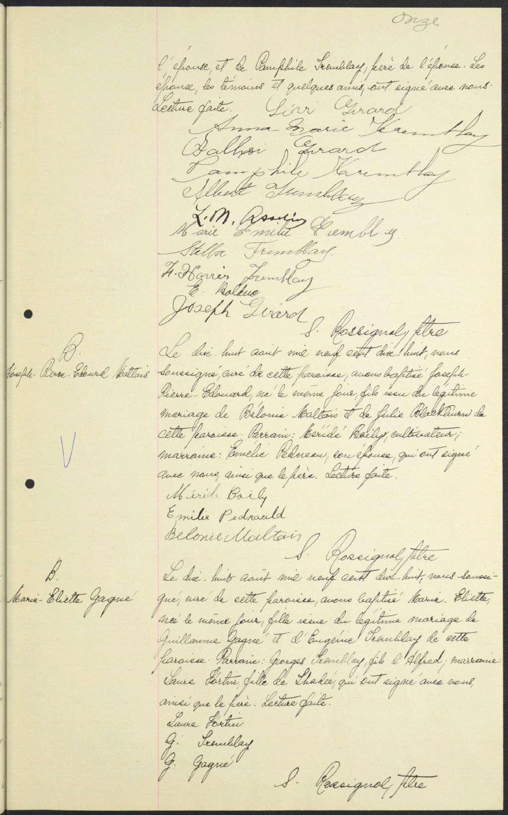- Cette série regroupe les registres originaux de l'état civil, lesquels contiennent les enregistrements de baptêmes, de mariages et de sépultures consignés par le curé ou son représentant au cours de la période concernée par les documents.Outre les renseignements à caractère généalogique que nous pouvons y puiser, cette série peut constituer une source documentaire importante pour toute étude-statistique ou comparative sur les conditions de vie à différentes époques (mortalité infantile, espérance de vie) ou pour toute recherche portant sur l'occupation des terres (lieu de résidence), sur le mode vie (métiers et professions, statut et âge des époux), sur les classes sociales (titres des parties impliquées, témoins/amis/parents présents lors du mariage), sur des événements spéciaux (quelques mentions dans les sépultures) et sur des sujets à incidence médicale tels les maladies héréditaires (cause du décès)