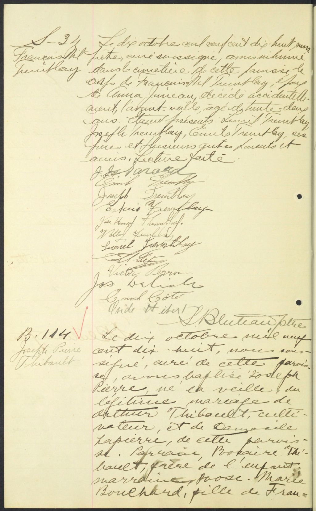 - Cette série regroupe les registres originaux de l'état civil, lesquels contiennent les enregistrements de baptêmes, de mariages et de sépultures consignés par le curé ou son représentant au cours de la période concernée par les documents.Outre les renseignements à caractère généalogique que nous pouvons y puiser, cette série peut constituer une source documentaire importante pour toute étude-statistique ou comparative sur les conditions de vie à différentes époques (mortalité infantile, espérance de vie) ou pour toute recherche portant sur l'occupation des terres (lieu de résidence), sur le mode vie (métiers et professions, statut et âge des époux), sur les classes sociales (titres des parties impliquées, témoins/amis/parents présents lors du mariage), sur des événements spéciaux (quelques mentions dans les sépultures) et sur des sujets à incidence médicale tels les maladies héréditaires (cause du décès)