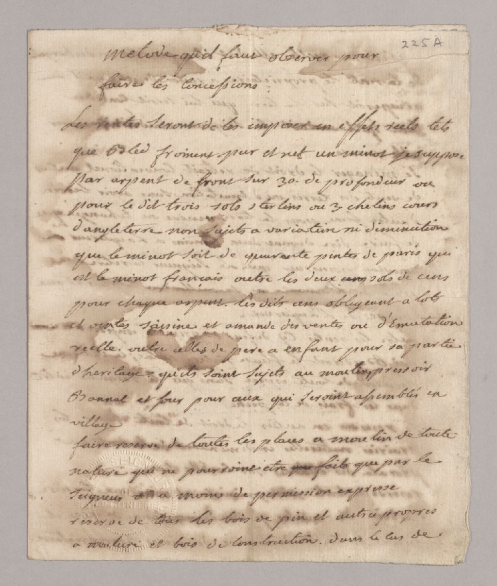 Méthode qu’il faut observer pour faire les concessions de terre, [17-?]-[19-?], Archives nationales à Québec, Fonds Famille Joly de Lotbinière, (03Q,P351,S16,P5).