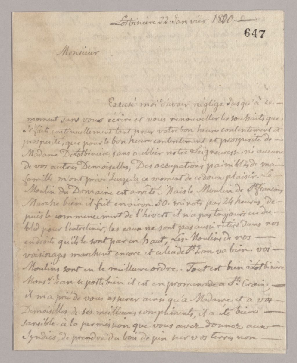 - Correspondance au sujet de la gestion de la seigneurie