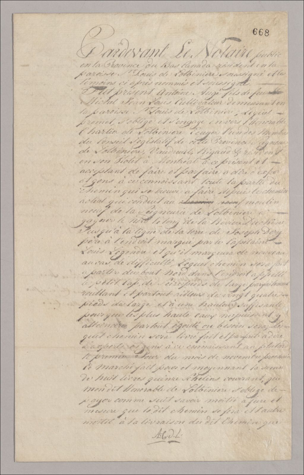Marché entre Antoine Augé et [Michel-Eustache-Gaspard-Alain Chartier de Lotbinière]