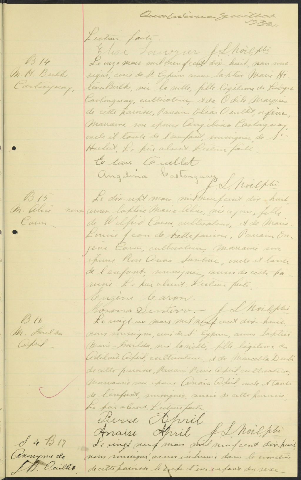 Saint-Cyprien, 1888-1921, Archives nationales à Rimouski, Fonds Cour supérieure. District judiciaire de Kamouraska. État civil, (01R,CE104,S38).