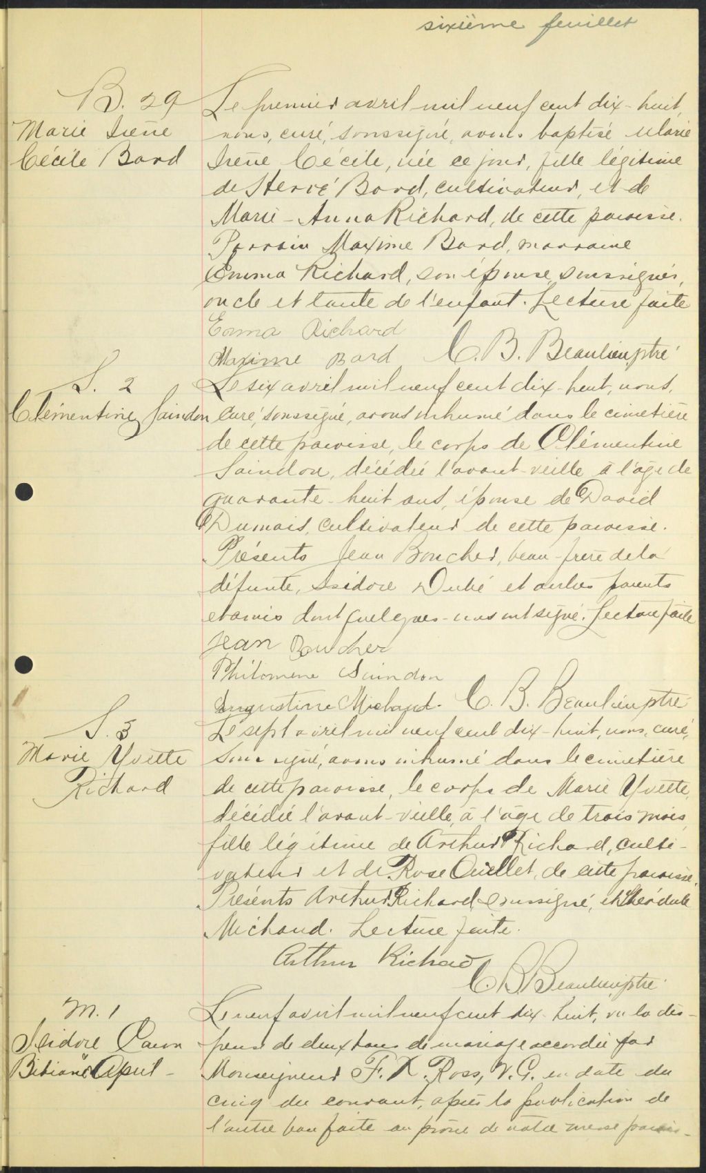 Saint-Hubert, 1886-1921, Archives nationales à Rimouski, Fonds Cour supérieure. District judiciaire de Kamouraska. État civil, (01R,CE104,S5).