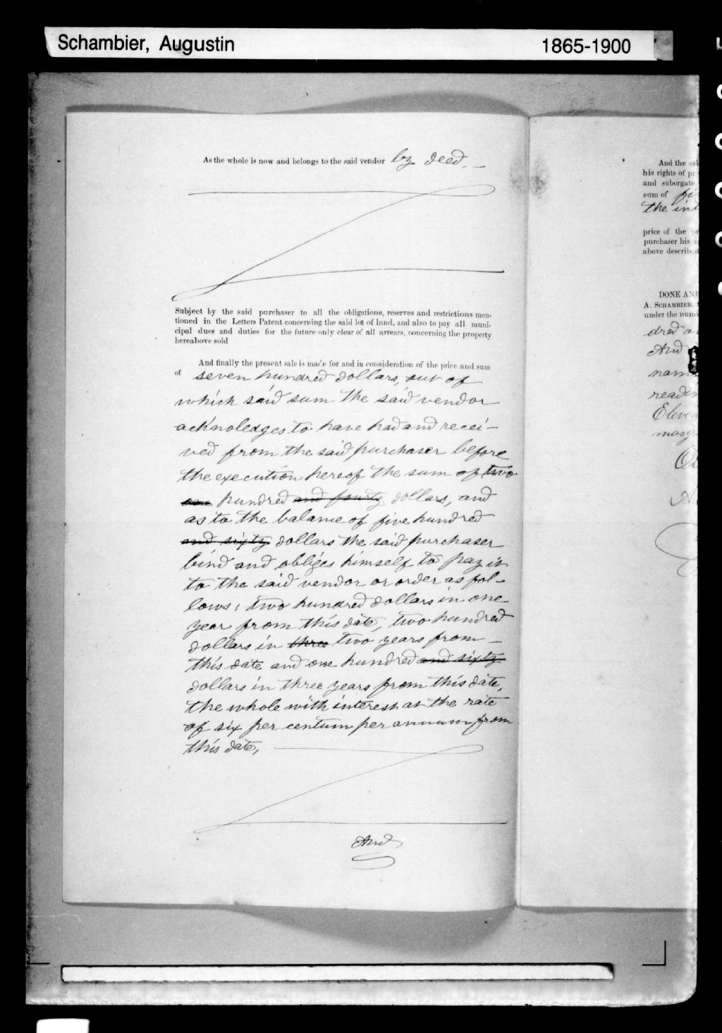 - Cette série regroupe les minutes notariales du greffe du notaire Augustin Schambier (10889 pièces numérotées) et un répertoire original pertinent.Outre les informations spécifiques aux parties impliquées dans chacun des contrats consignés dans ce greffe, lesquelles peuvent être utilisées, entre autre, dans le cadre de recherches à caractère généalogique, cette série constitue, dans un premier temps, une source documentaire intéressante sur le mode de fonctionnement de la société. D'autre part, prises dans leur ensemble, les données colligées dans ces documents officiels à contenu administratif et légal peuvent également constituer une source documentaire des plus révélatrices sur le mode et les conditions de vie de la population pendant cette période (métiers et professions mentionnés aux contrats, inventaires de biens, testaments), sur les classes sociales (mention de titres correspondant au rang social des parties concernées tels [...]