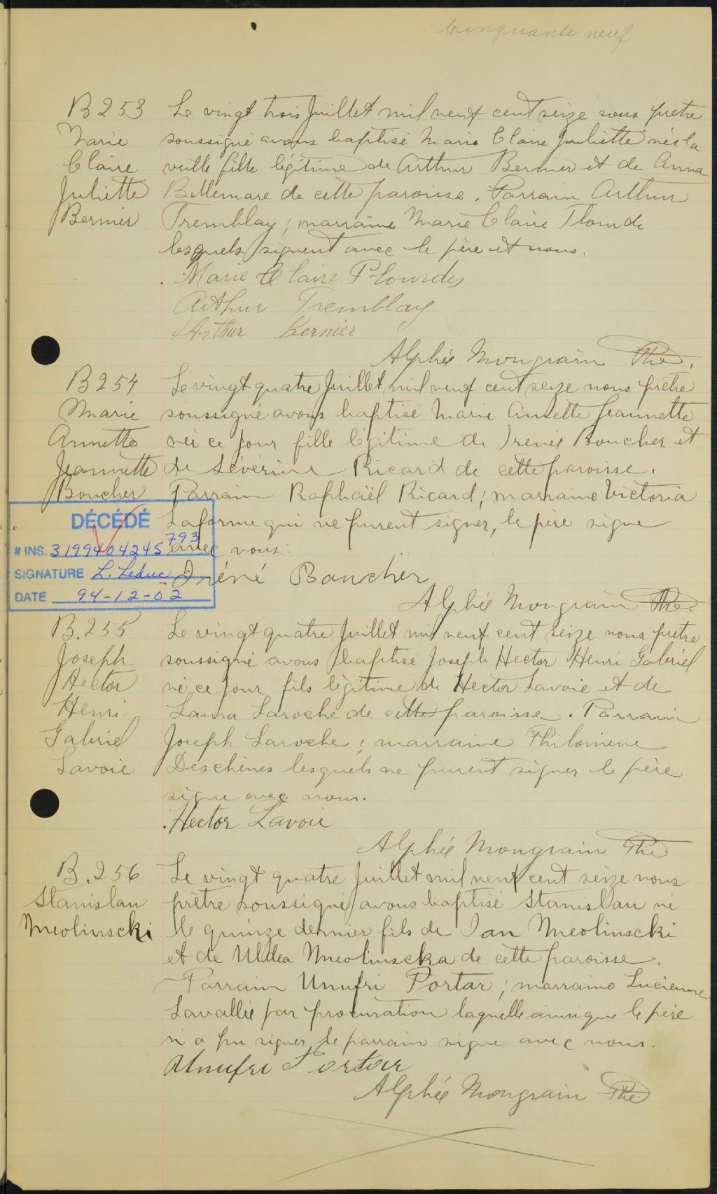 Saint-Paul-de-Grand'Mère, 1899-1920, Archives nationales à Trois-Rivières, Fonds Cour supérieure. District judiciaire de Saint-Maurice. État civil, (04T,CE404,S19).