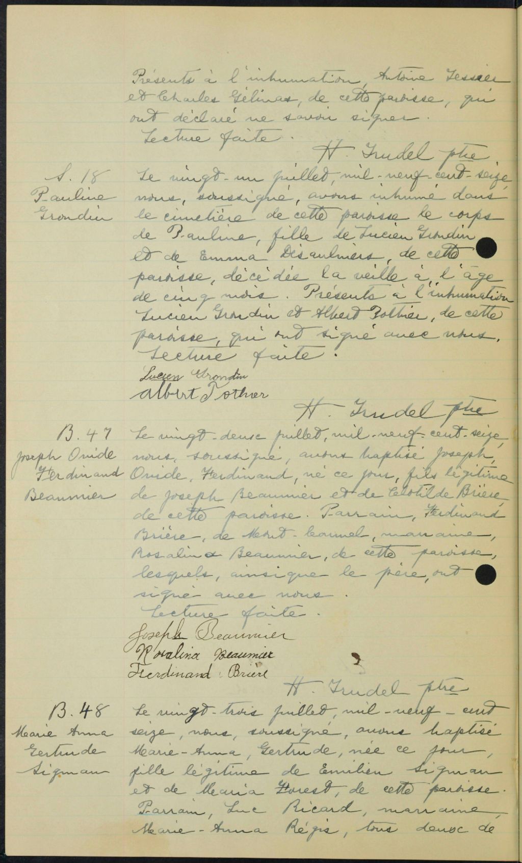 Notre-Dame-de-la-Présentation-d'Almaville, 1910-1920, Archives nationales à Trois-Rivières, Fonds Cour supérieure. District judiciaire de Saint-Maurice. État civil, (04T,CE404,S33).