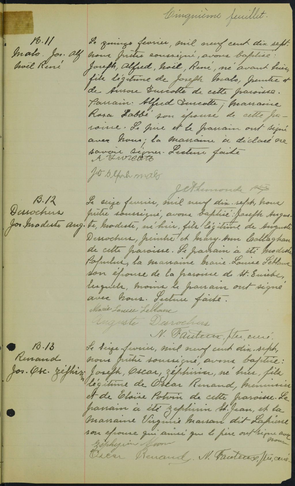 Sainte-Claire, 1906-1921, Archives nationales à Montréal, Fonds Cour supérieure. District judiciaire de Montréal. État civil, (06M,CE601,S248).