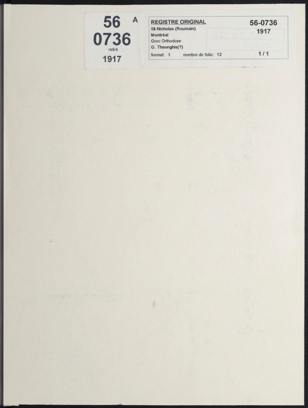 St. Nicholas Roumanian Orthodox Greek Church, 1917-1920, Archives nationales à Montréal, Fonds Cour supérieure. District judiciaire de Montréal. État civil, (06M,CE601,S359).