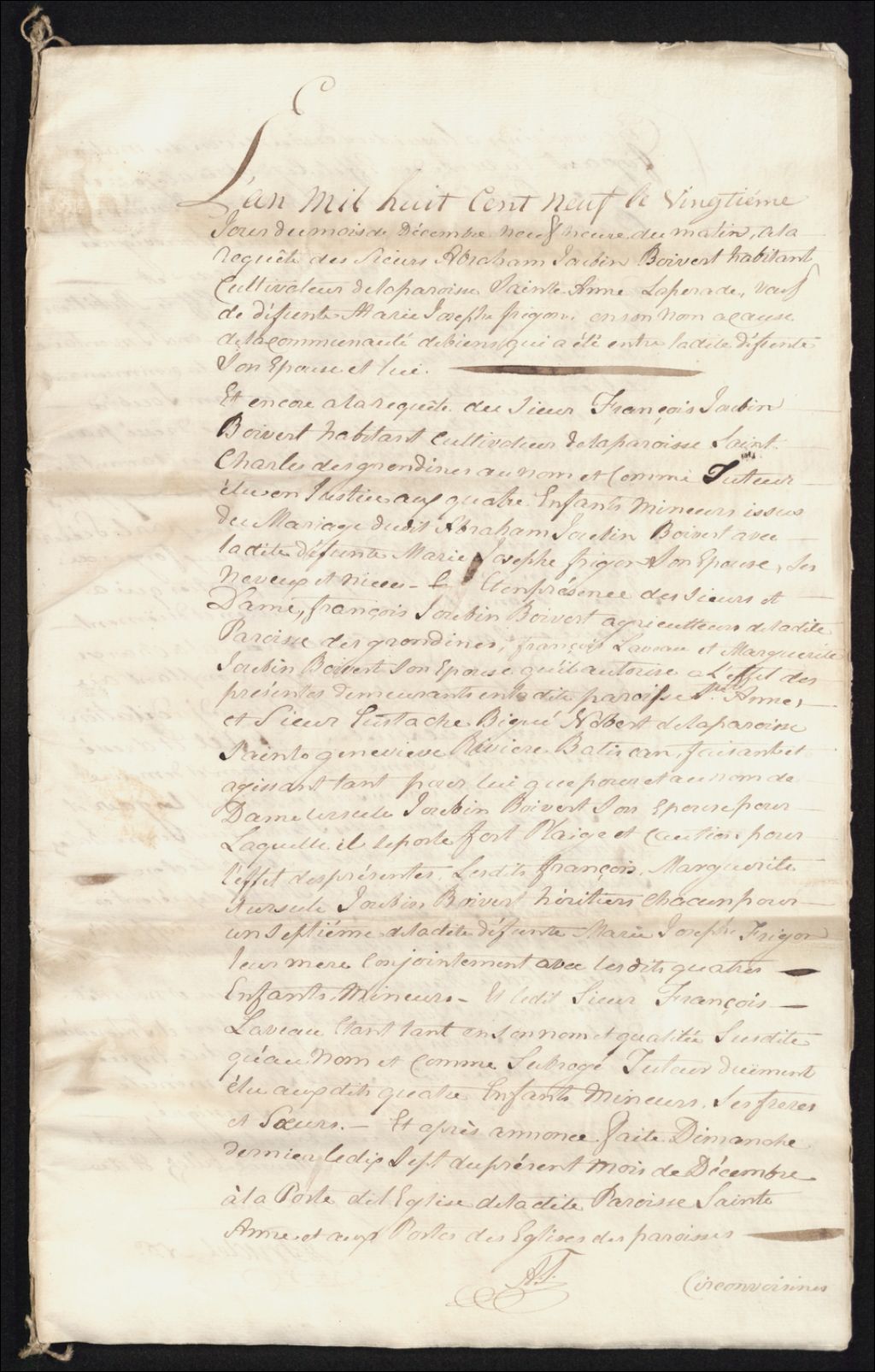 - Inventaire (meubles et immeubles) entre Augustin Joubin-Boisvert et Abraham Joubin-Boisvert et Marie-Josephe Frigon par J. Augustin Trudel, notaire
