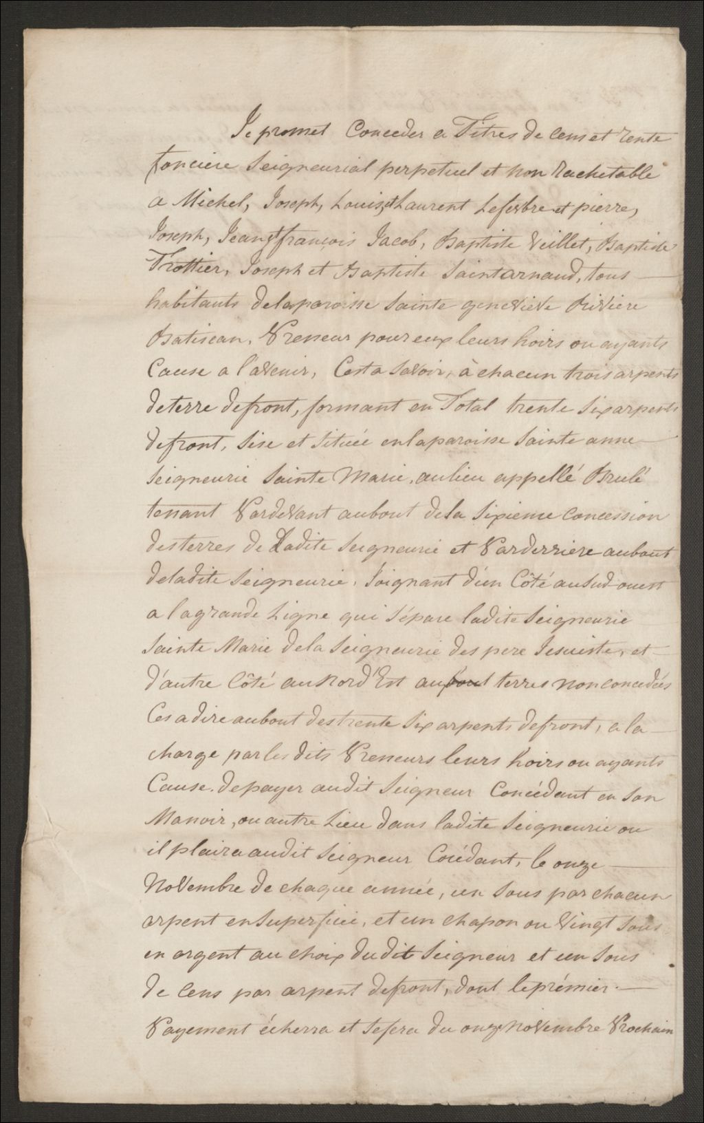 - Promesse de concession entre Augustin Joubin-Boisvert et Michel Lefebvre, Joseph, Louis, Laurent et al