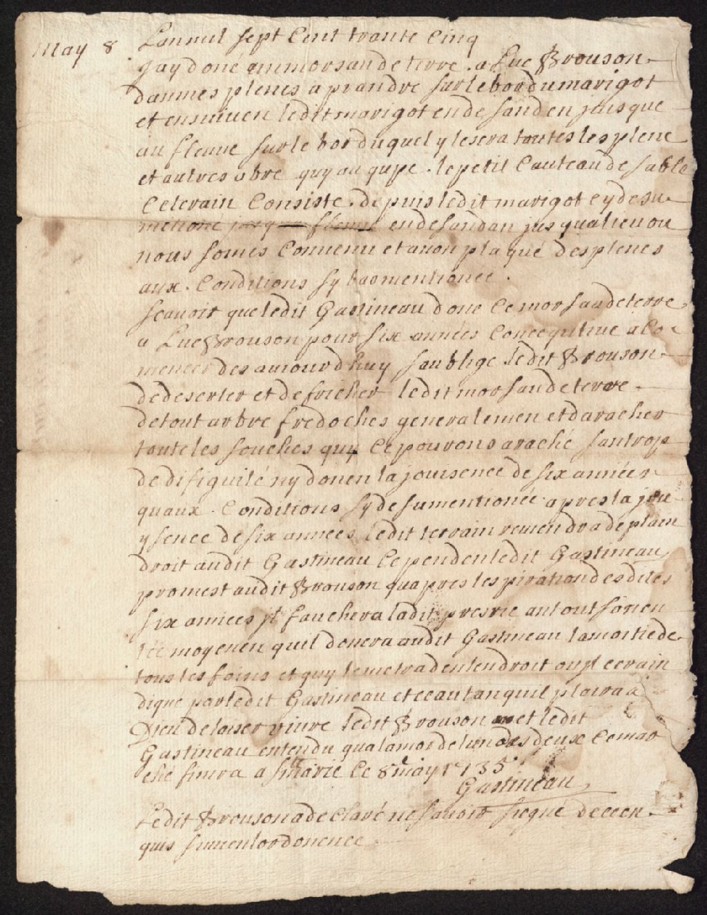 Promesse de concession, 1735-05-08, Archives nationales à Trois-Rivières, Collection seigneuries Sainte-Anne et Sainte-Marie, (04T,P134,S2,SS3,D8).