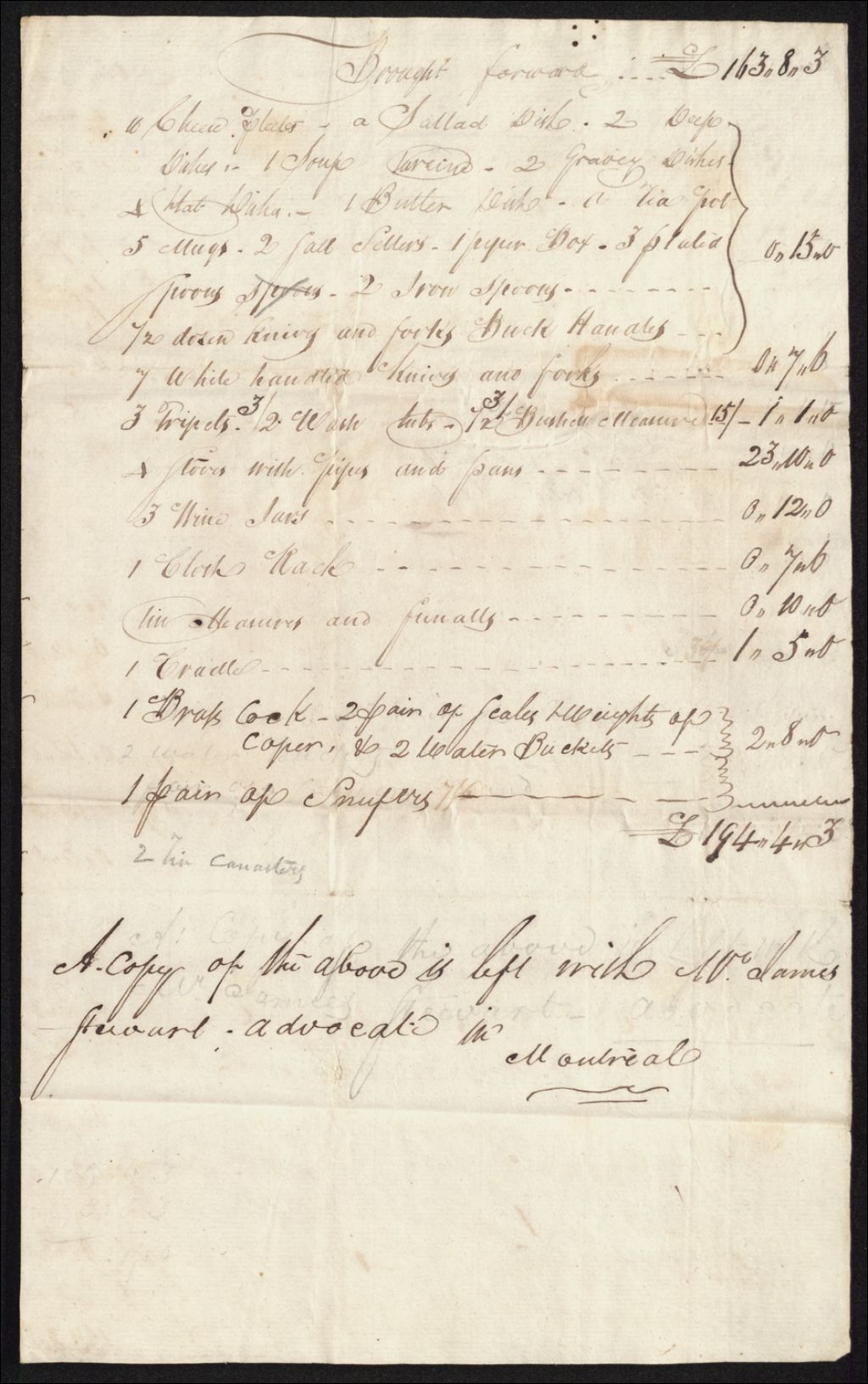 - Inventaire (mobilier) entre Augustin Joubin-Boisvert et Thomas Webster et Julie Mayrand par James, avocat