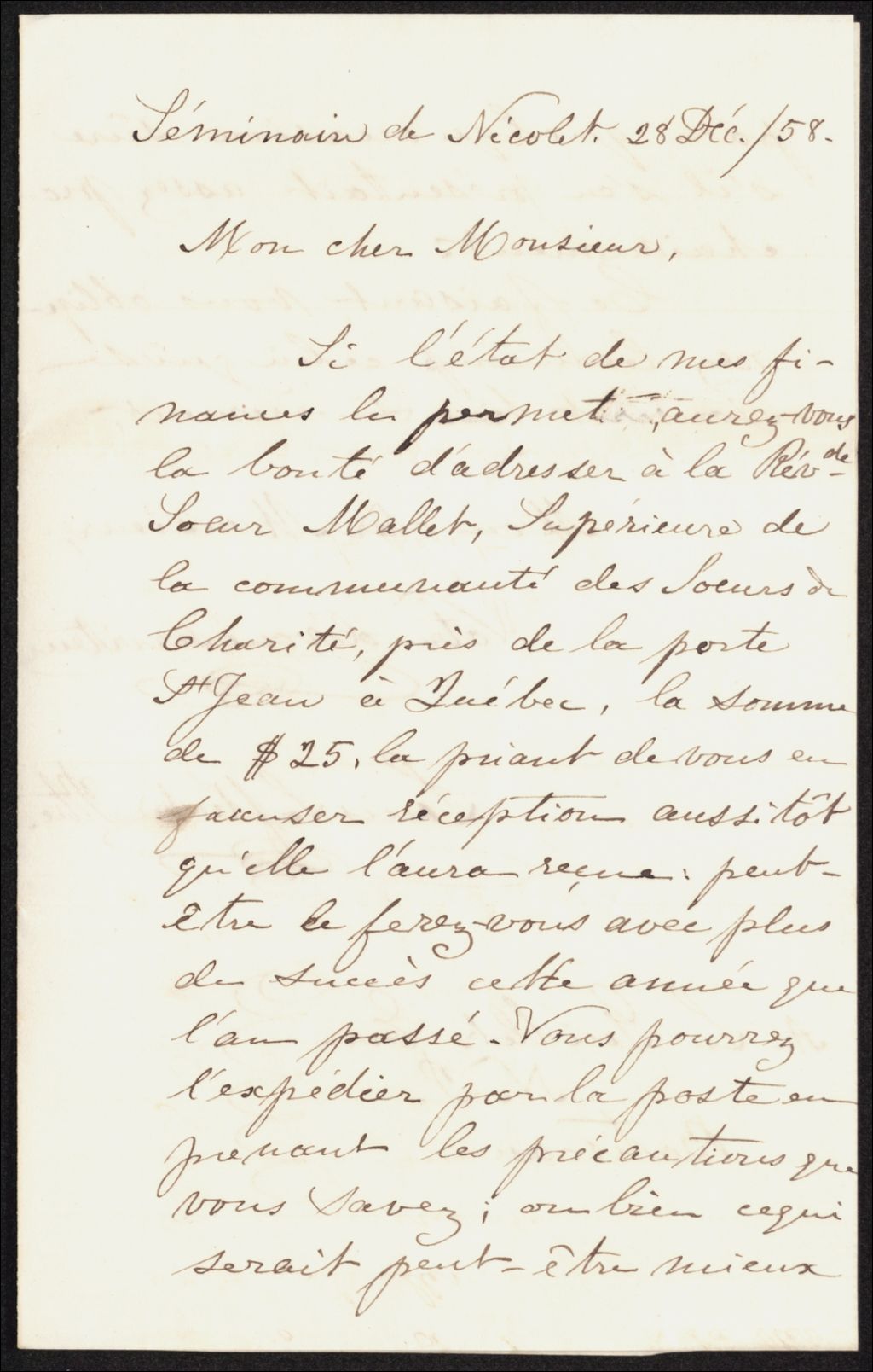 - Correspondance (personnelle, don aux S¿urs de la Charité) entre les héritiers des co-seigneurs et Louis-François Richer-Laflèche, procureur seigneurial et Louis Guillet