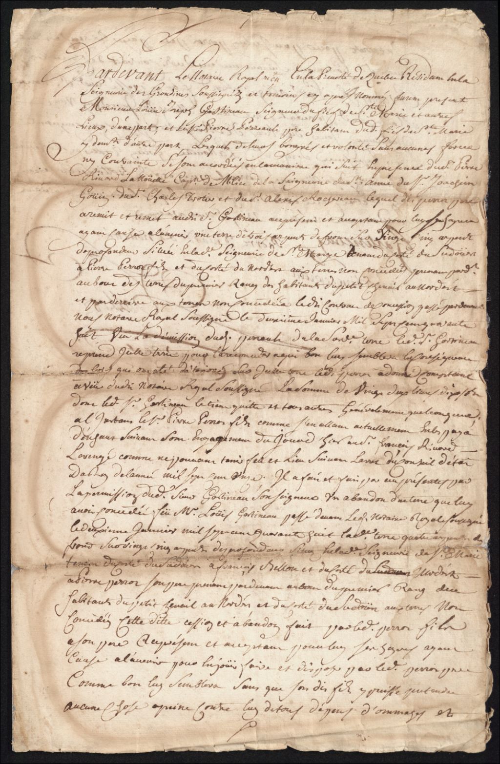- Marché entre Jean Lemoyne et Pierre Perreault par Arnould-Balthazar Pollet, notaire