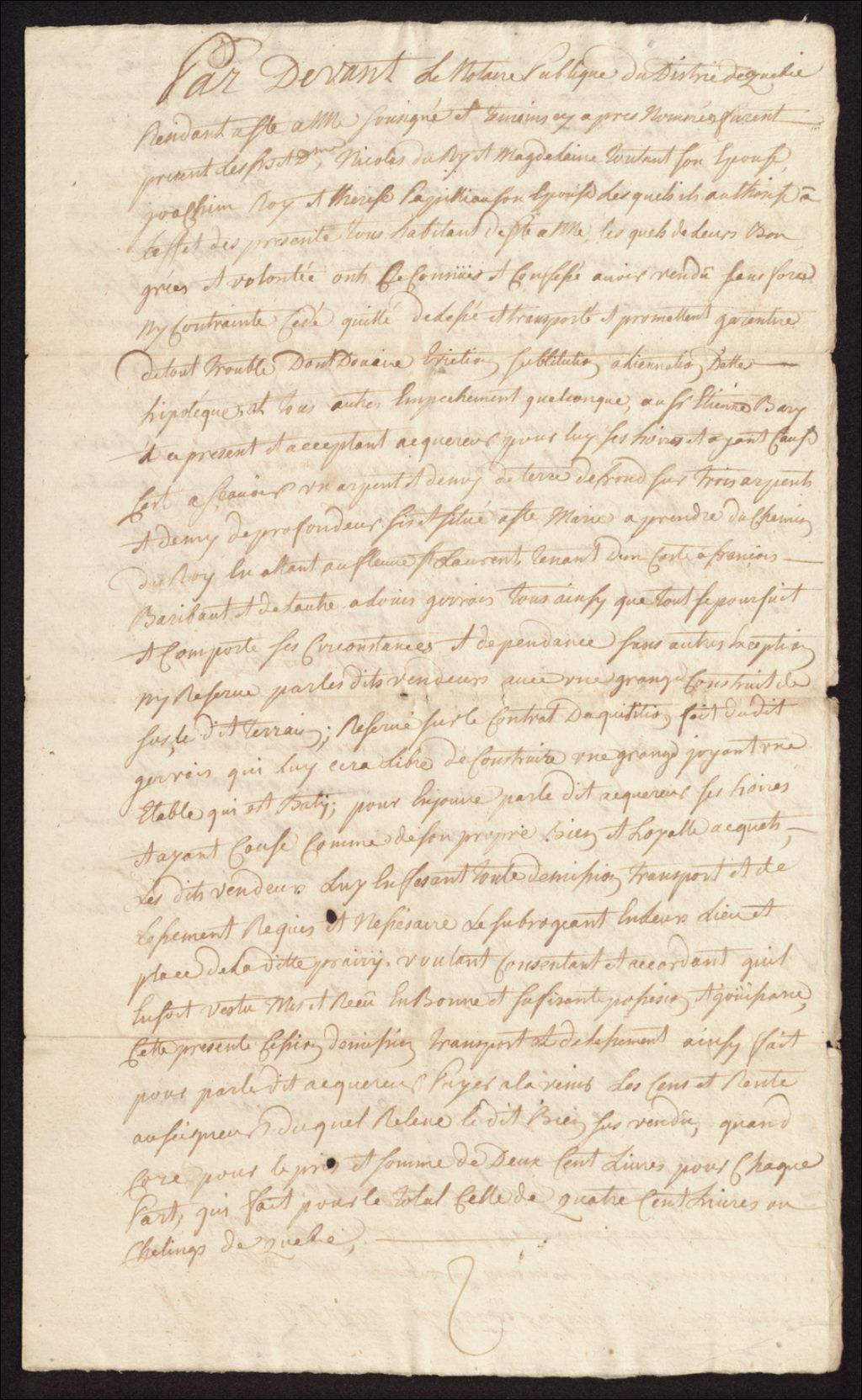 Marché (vente terre et grange et annotations d’ensaisinement)