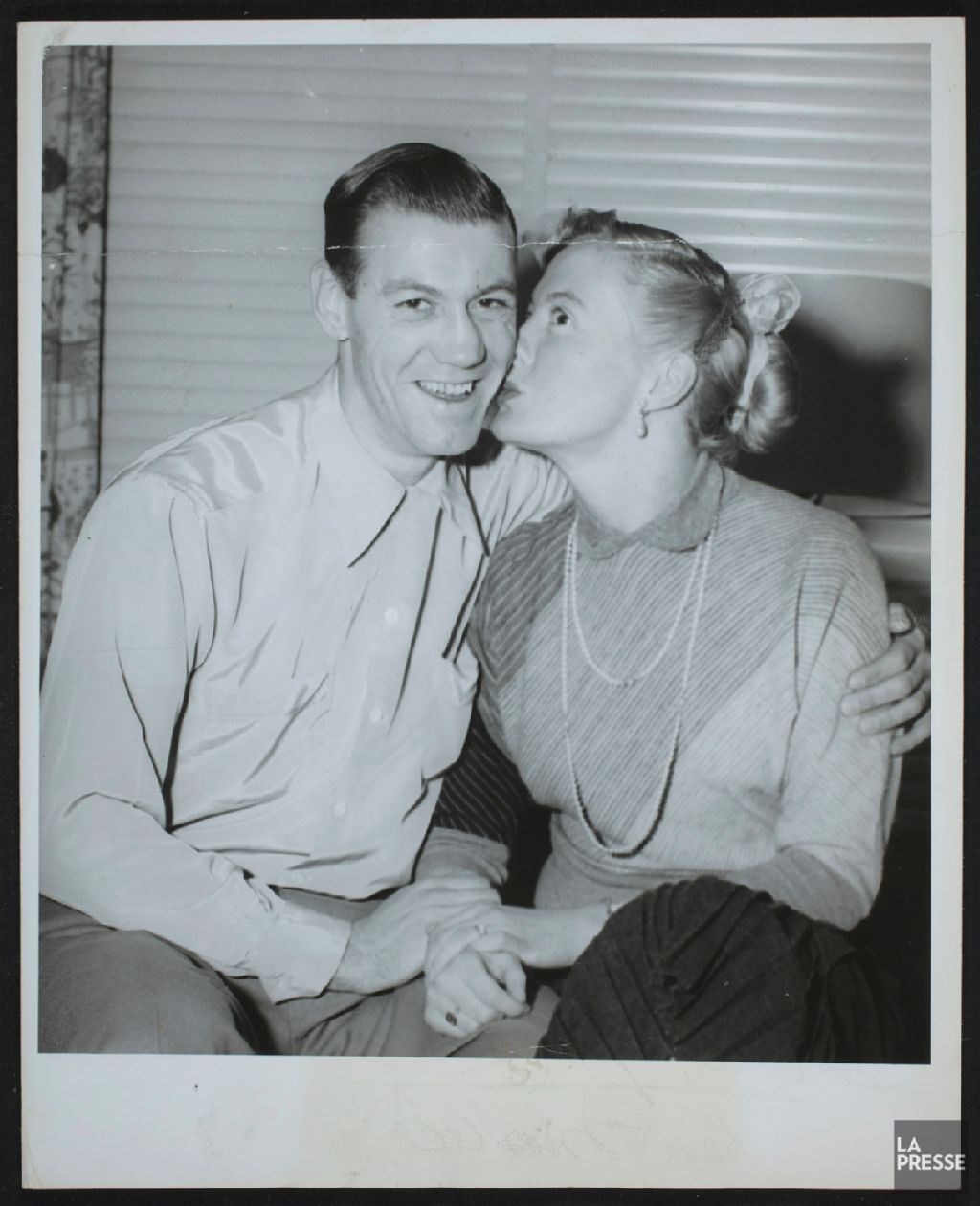 - Les documents montrent le hockeyeur Ken Mosdell accompagné notamment des membres de sa famille ainsi que Frank Selke, Elmer Lach, Émile Bouchard et Toe Blake.