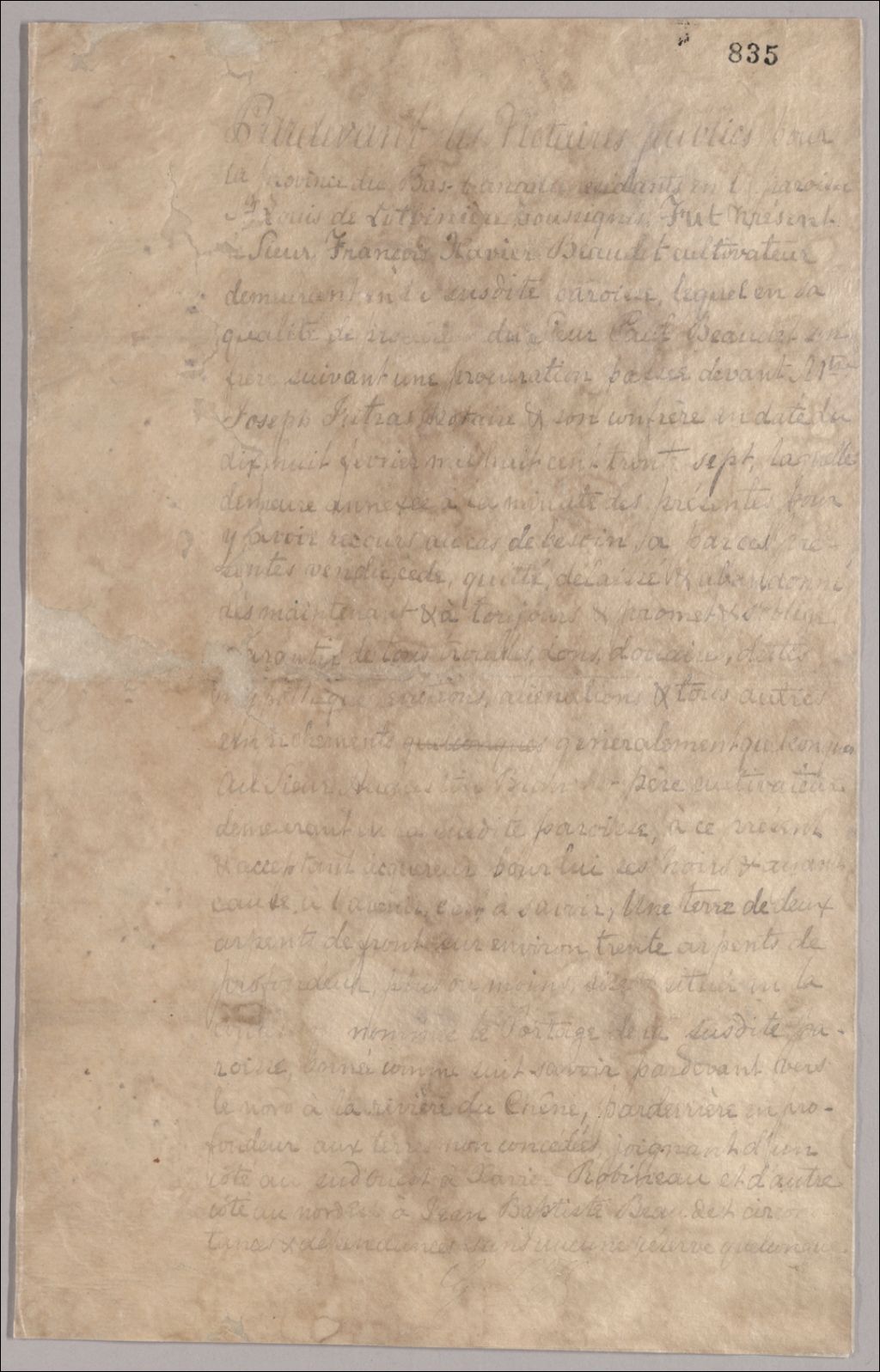 Vente de terre par François-Xavier Beaudet à Augustin Blanchet