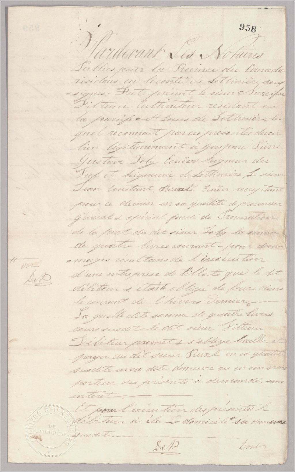 - Obligation par Narcisse Filteau à Jean-Constant Rival