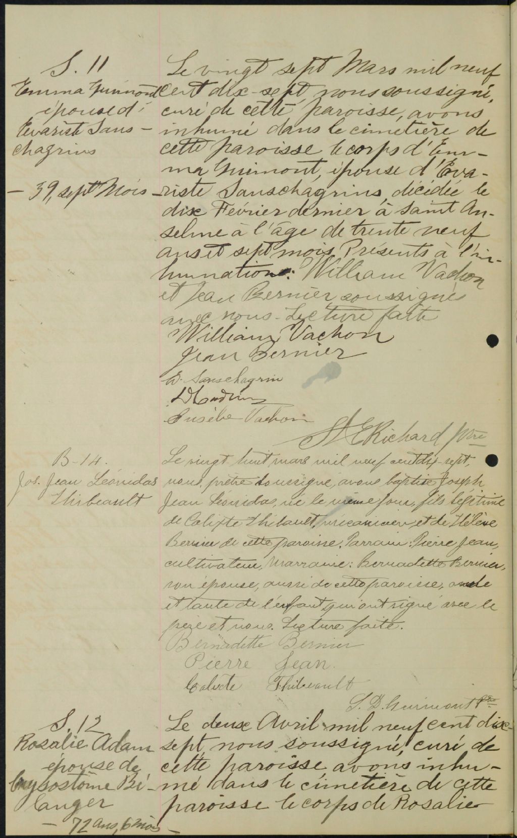 Saint-Eugène-de-l'Islet, 1874-1922, Archives nationales à Québec, Fonds Cour supérieure. District judiciaire de Montmagny. État civil, (03Q,CE302,S16).
