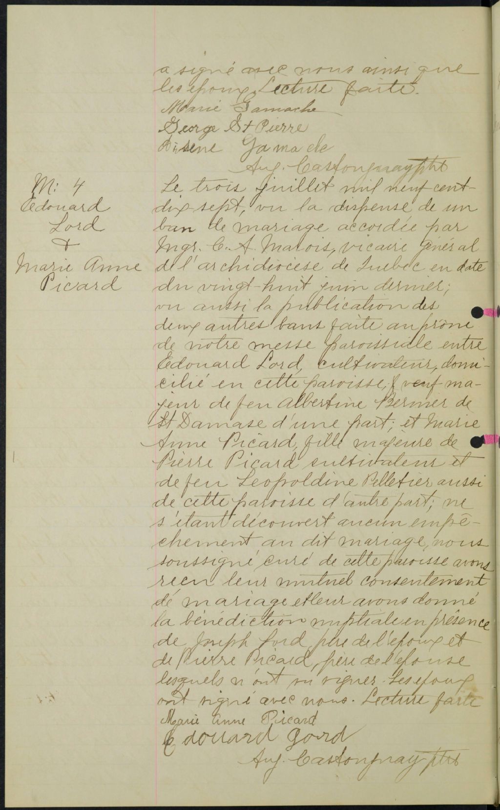 Saint-Damase-des-Aulnaies, 1889-1922, Archives nationales à Québec, Fonds Cour supérieure. District judiciaire de Montmagny. État civil, (03Q,CE302,S28).