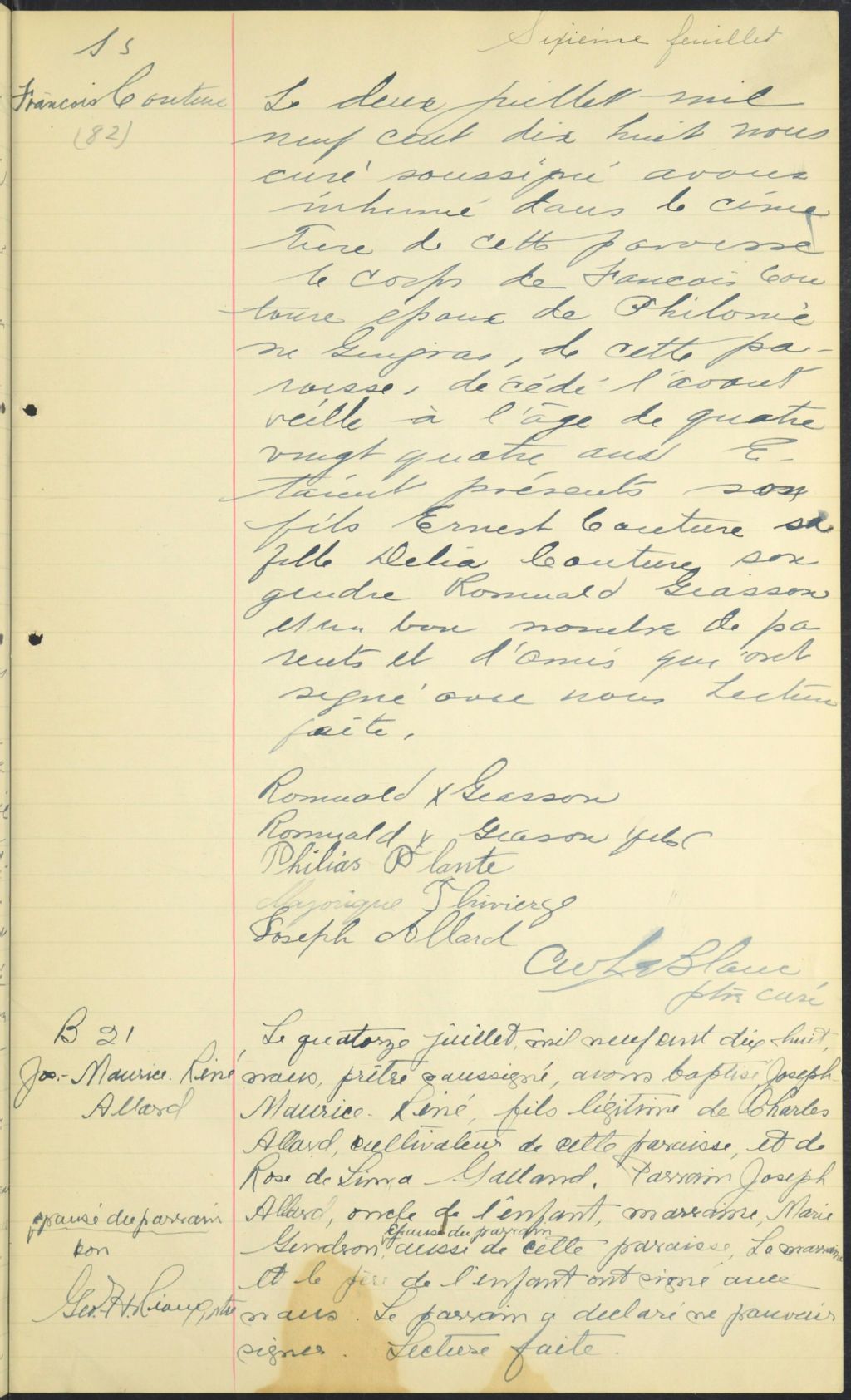 Sainte-Florence de Beaurivage, 1909-1921, Archives nationales à Rimouski, Fonds Cour supérieure. District judiciaire de Rimouski. État civil, (01R,CE101,S39).