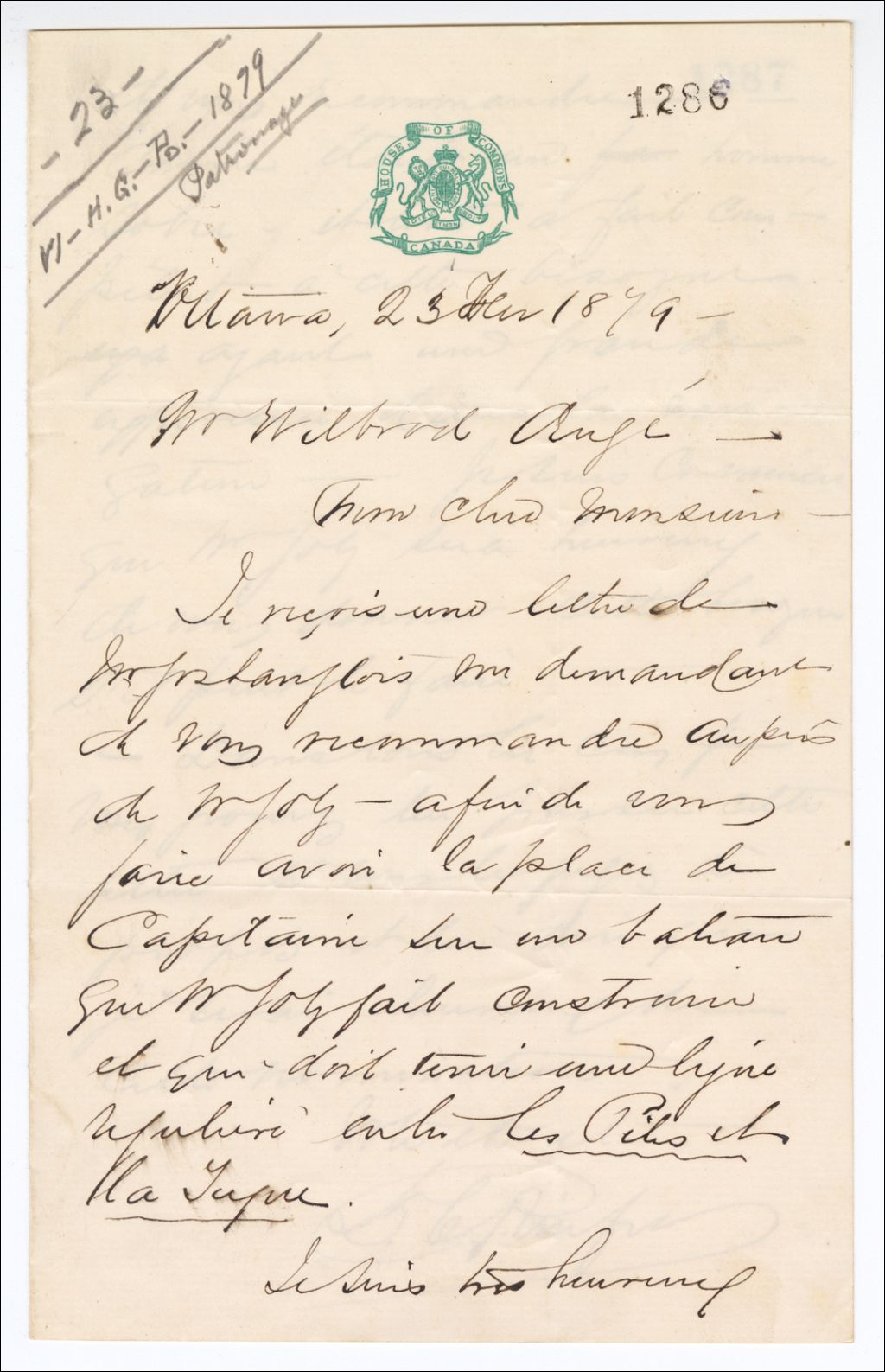 - Lettre du Docteur C. I. Rinfret à Wilbrod Augé