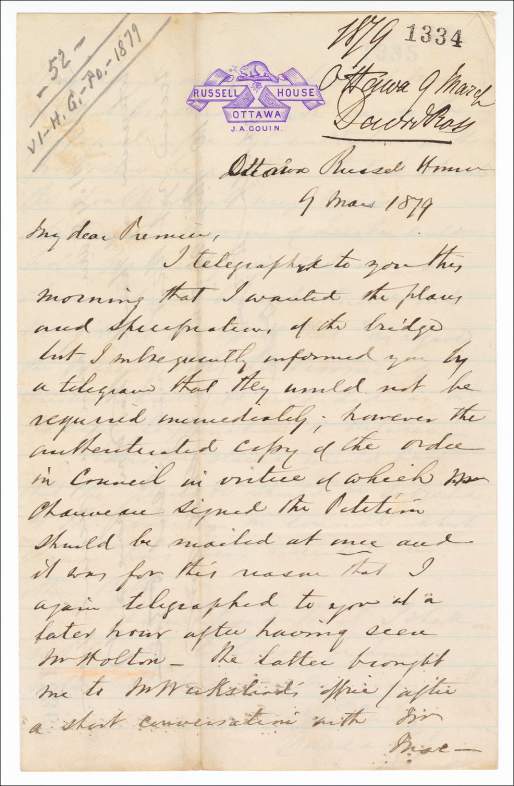 - Bill et pétition concernant chemin de fer et pont entre Ontario et Québec