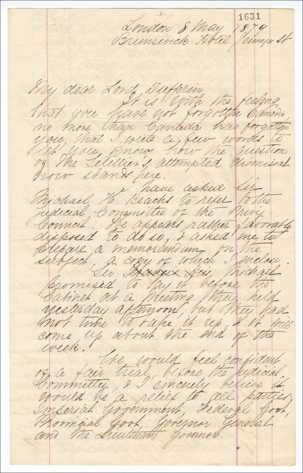 Lettre de Henri-Gustave Joly à Lord Dufferin