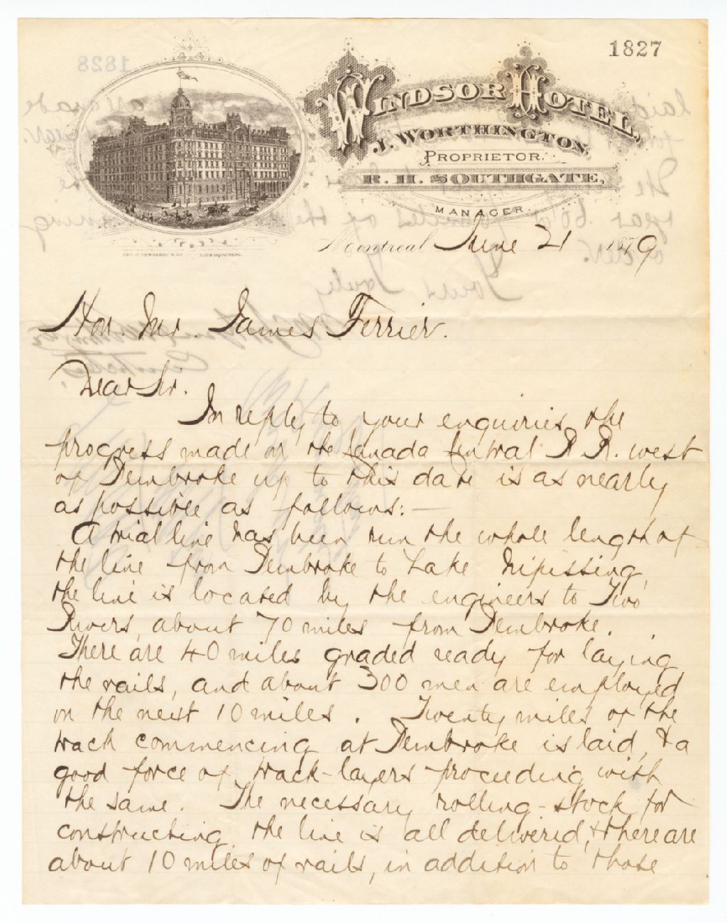 Lettre de McIntyre & Worthington à James Ferrier, 21 juin 1879, Archives nationales à Québec, Fonds Famille Joly de Lotbinière, (03Q,P351,S4,SS1,P1827).