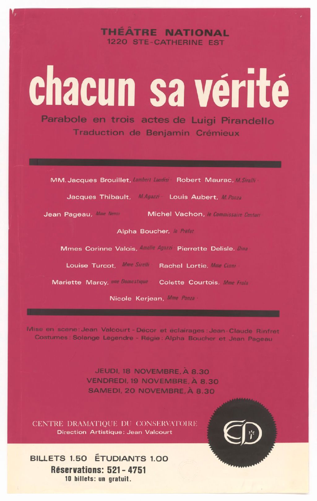 Chacun sa vérité, parabole en trois actes de Luigi Pirandello... mise en scène Jean Valcourt