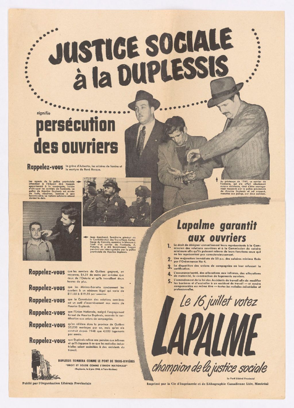 Justice sociale à la Duplessis signifie persécution des ouvriers : le 16 juillet, votez Lapalme, champion de la justice sociale