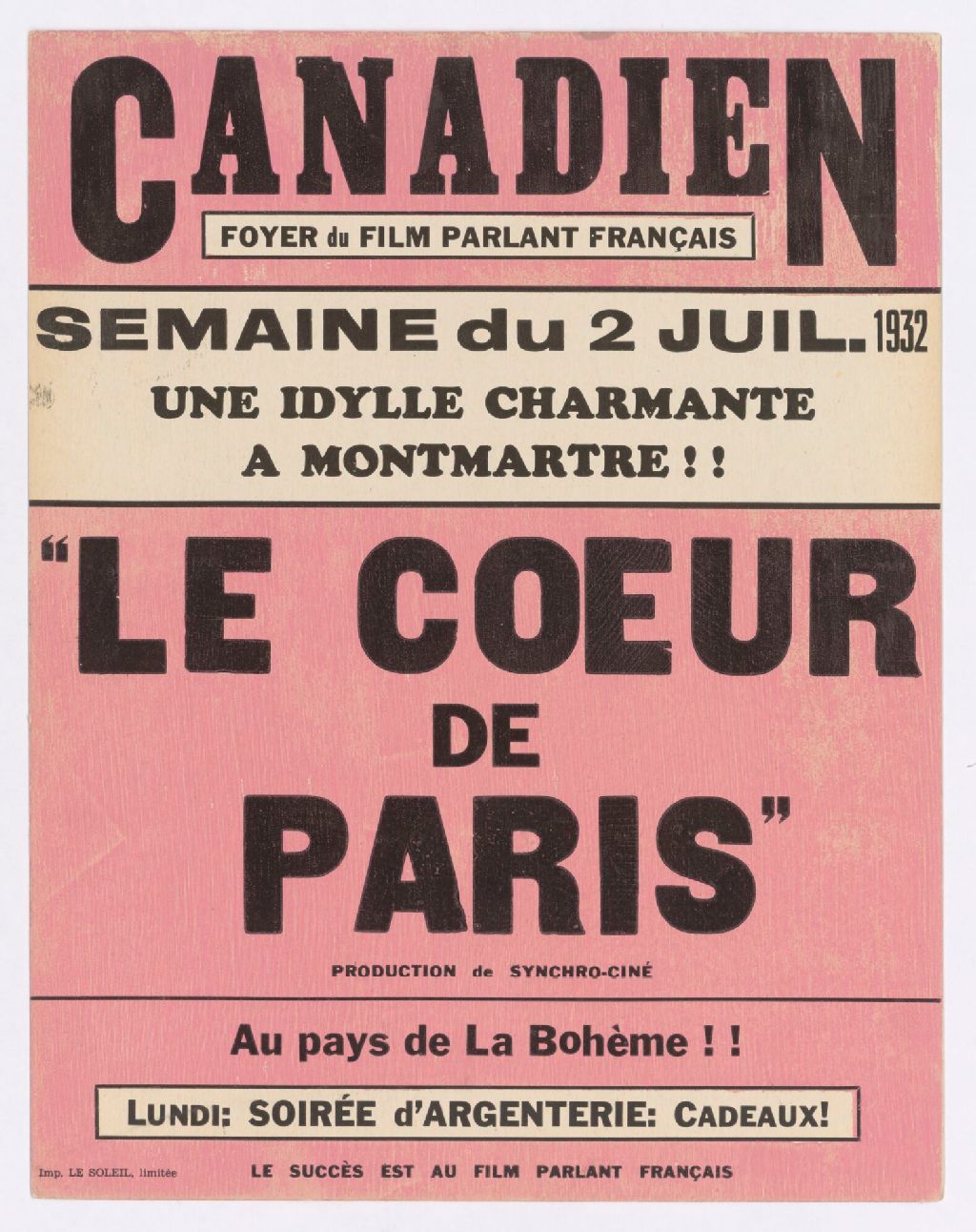 Semaine du 2 juil. 1932, une idylle charmante à Montmartre!!, "Le coeur de Paris", production de Synchro-Ciné : au pays de La Bohème!!