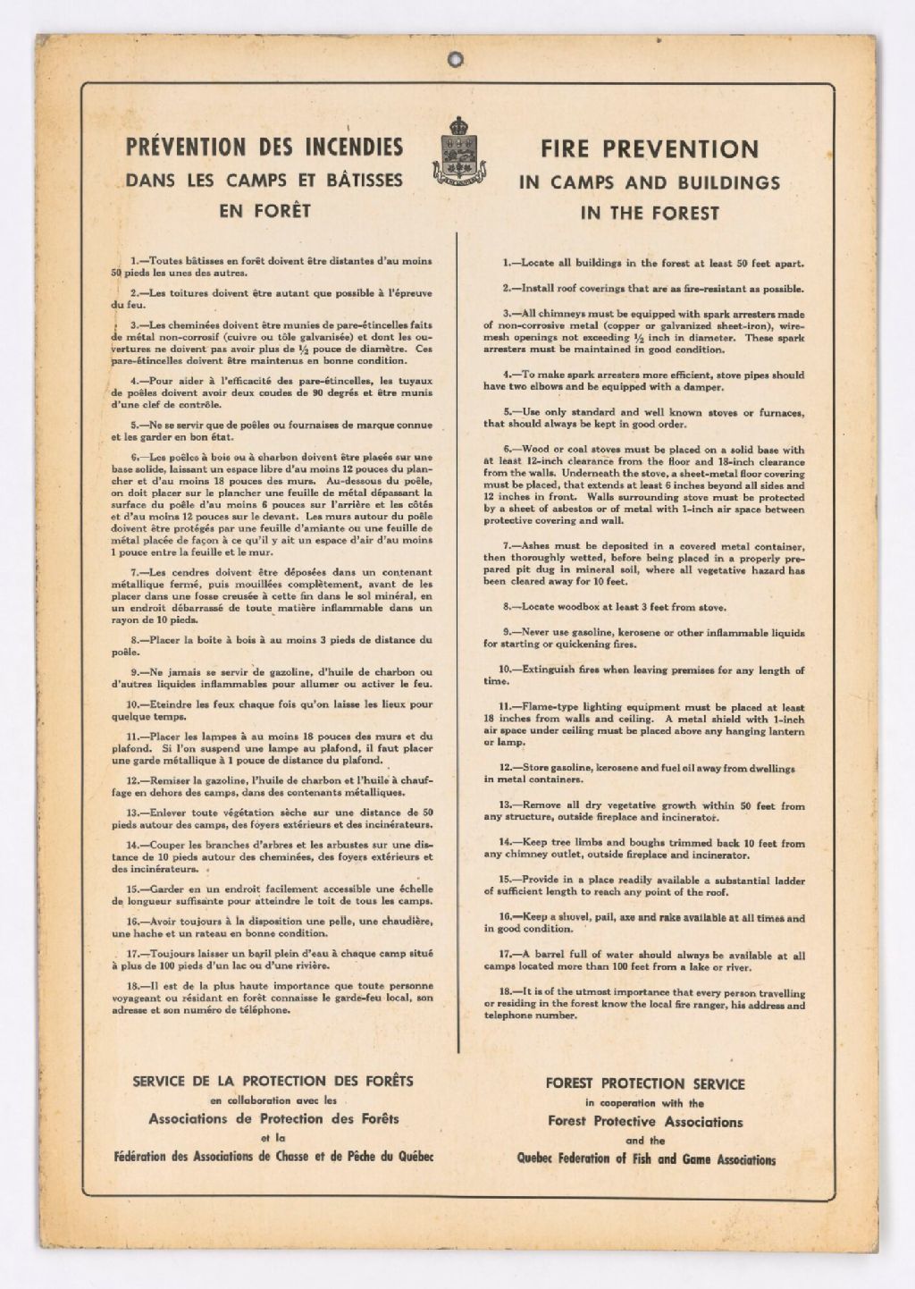 Prévention des incendies dans les camps et bâtisses en forêt = Fire prevention in camps and buildings in the forest